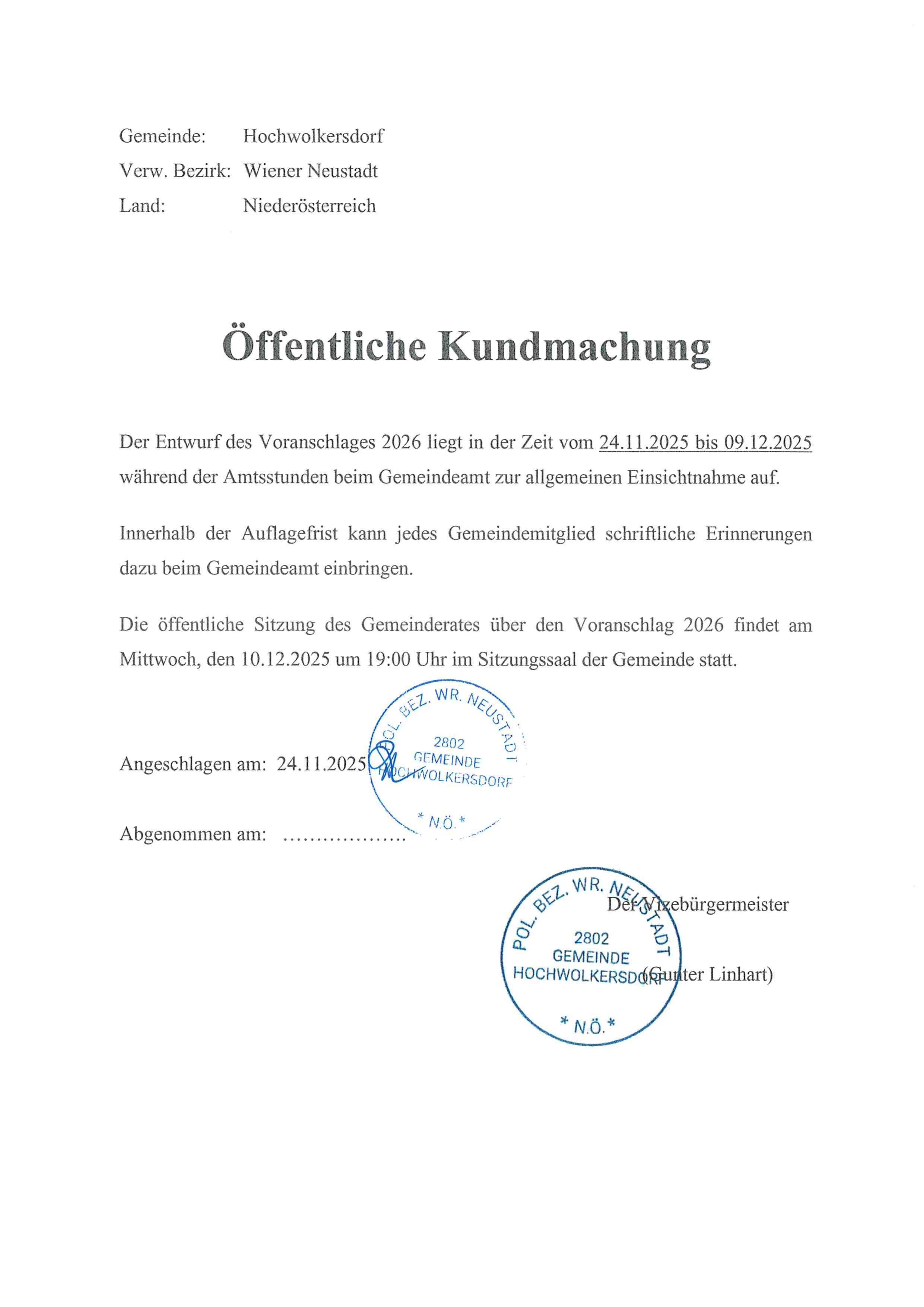 Öffentlicher Haushalt | Hochwolkersdorf - Gemeinde